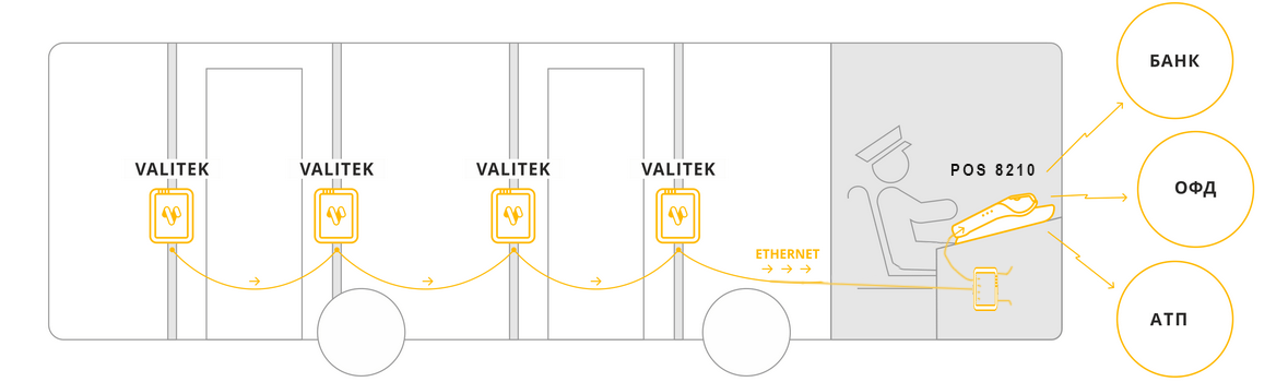Валидаторы устанавливается возле дверей автобуса для самостоятельной оплаты по банковским или транспортным картам.